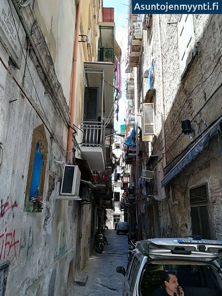 Tulevaisuuden vähättely on nähtävissä kaikkialla Napolissa. Talojen julkisivut ränsistyvät ja kaduilla on roskakasoja. Napoli onkin Euroopan tiheimmin asuttu kaupunki. Ikivanhasta asutuksesta johtuen rakentamatonta tilaa ei ole missään.