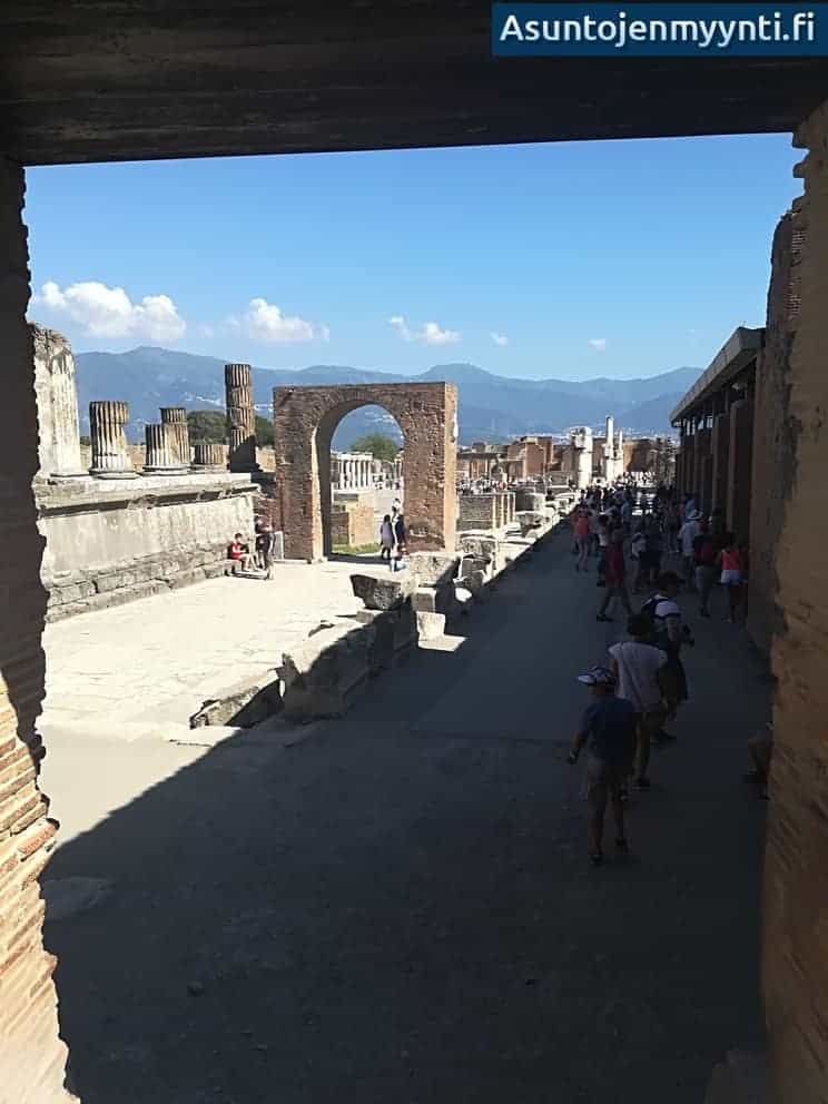 Nykyisin Pompei on maailmanperintökohde, mutta parituhatta vuotta sitten ihmiset eivät ymmärtäneet ympäristönsä luonnetta. He luulivat Vesuviuksen alla asuvien jättiläisten aiheuttavan maanjäristyksiä. Kiitos mudan ja tuhkan on tuosta hetkestä säilynyt paljon. Pompeissa olikin aivan pakko nipistellä itseään. Kylpyhuoneiden marmorit, mosaiikit, seinien maalit ja maalaukset olivat autenttisina jäljellä. Viimeistään traagisen runoilijan talon eteisen ”Varo koiraa”- lattiamosaiikki pysäytti.