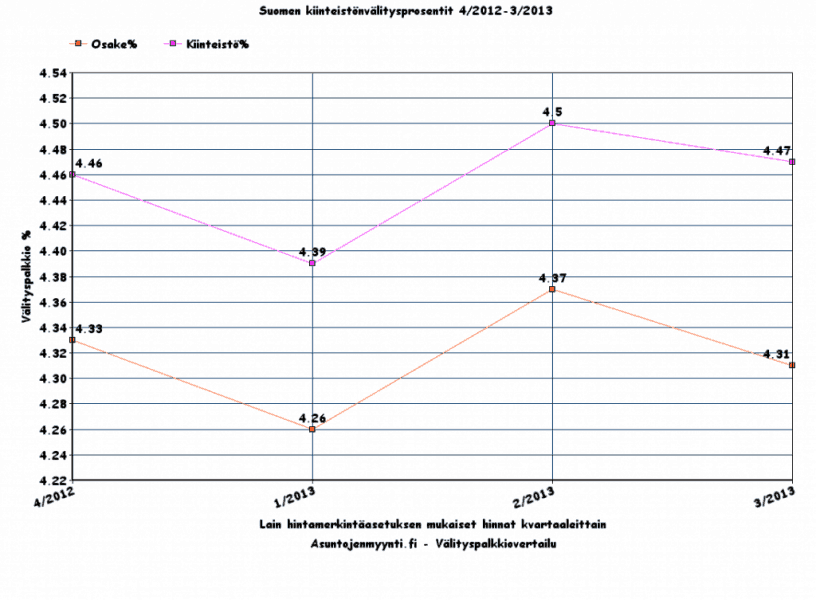 Ammattimaisen kiinteistönvälityksen hintojen kehitys 2/4 2013-3/4 2013.